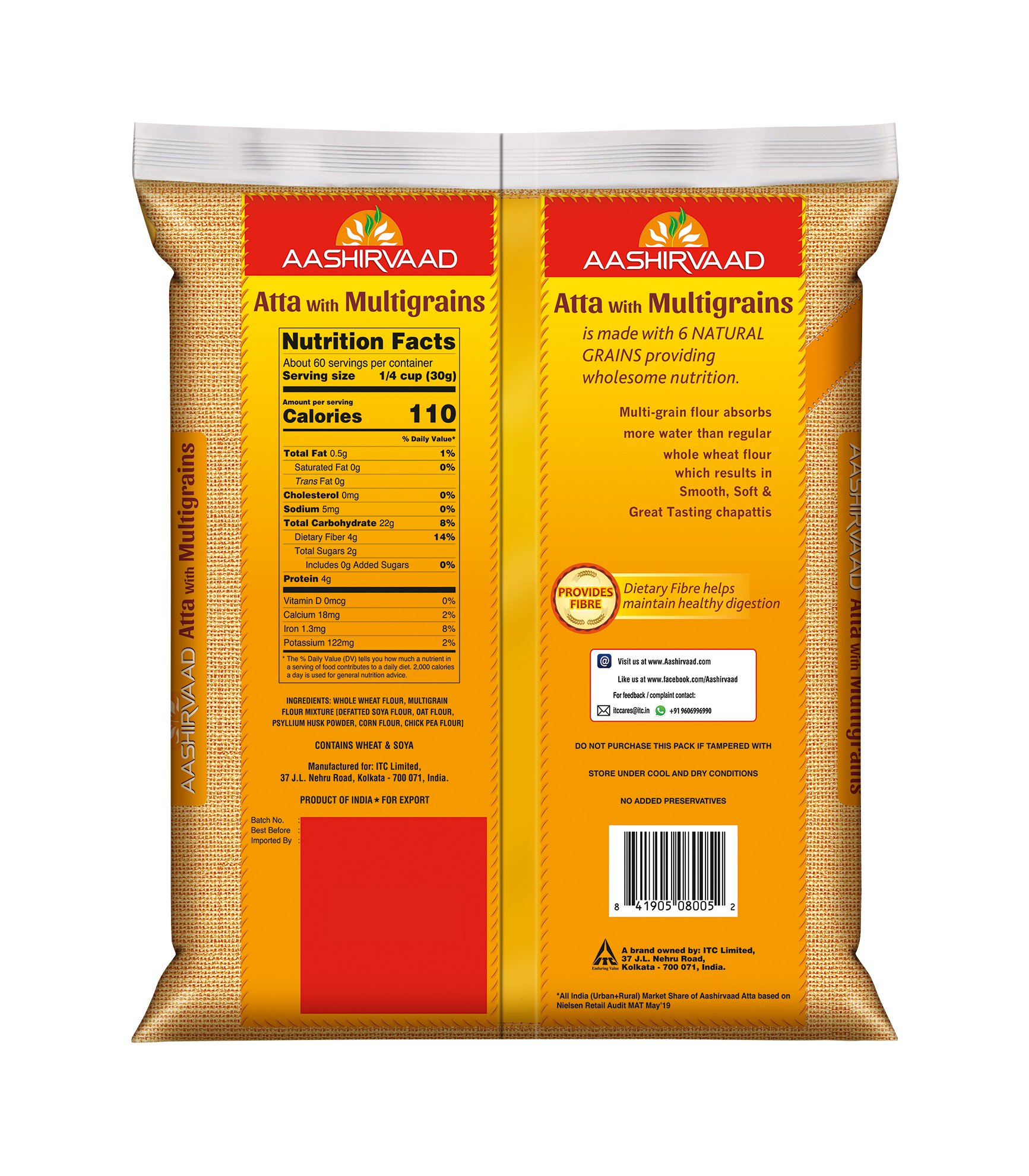 AASHIRVAAD WHOLE WHEAT MULTIGRAIN FLOUR 10X4 LB